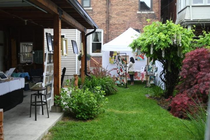 Art Tour was the last weekend in May. Two full days of displaying my art to the public along with 29 other artists at 17 other sites all around the neighbourhoods of West Toronto. It was a first of its kind of experience for me where I got to show my art to people and talk about it. I did not feel confident before the start of the event that I would have it in me to talk about my art for 12 hours in 2 days, but I did! And it came easily. I was touched that people from all walks of life came to see all the art that was on offer. I shared my site with a fellow artist Nicole Rulff who was offering her stunning nature photography along with some small landscape paintings. Our art was so very different that I think it gave a good variety for people to partake in. The setting of a beautiful backyard with wisteria vines and a lovely Japanese Maple tree along with a stream was a perfect place for us to have our artwork displayed in. All that rain on Saturday morning only made the garden more lush and lovely. My colourful abstract paintings hopefully brought some cheer to people who came to look at them.